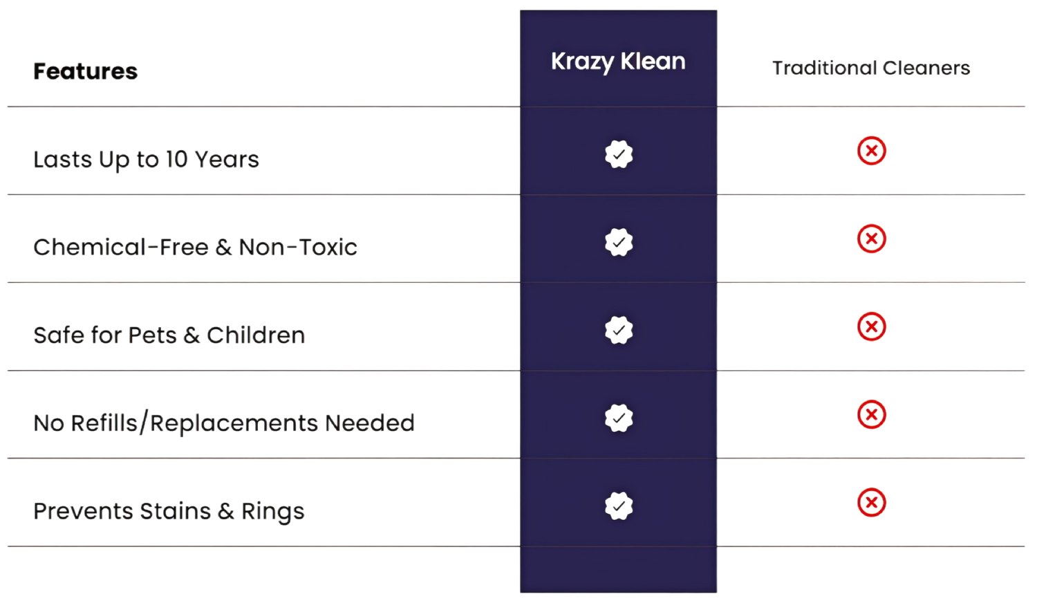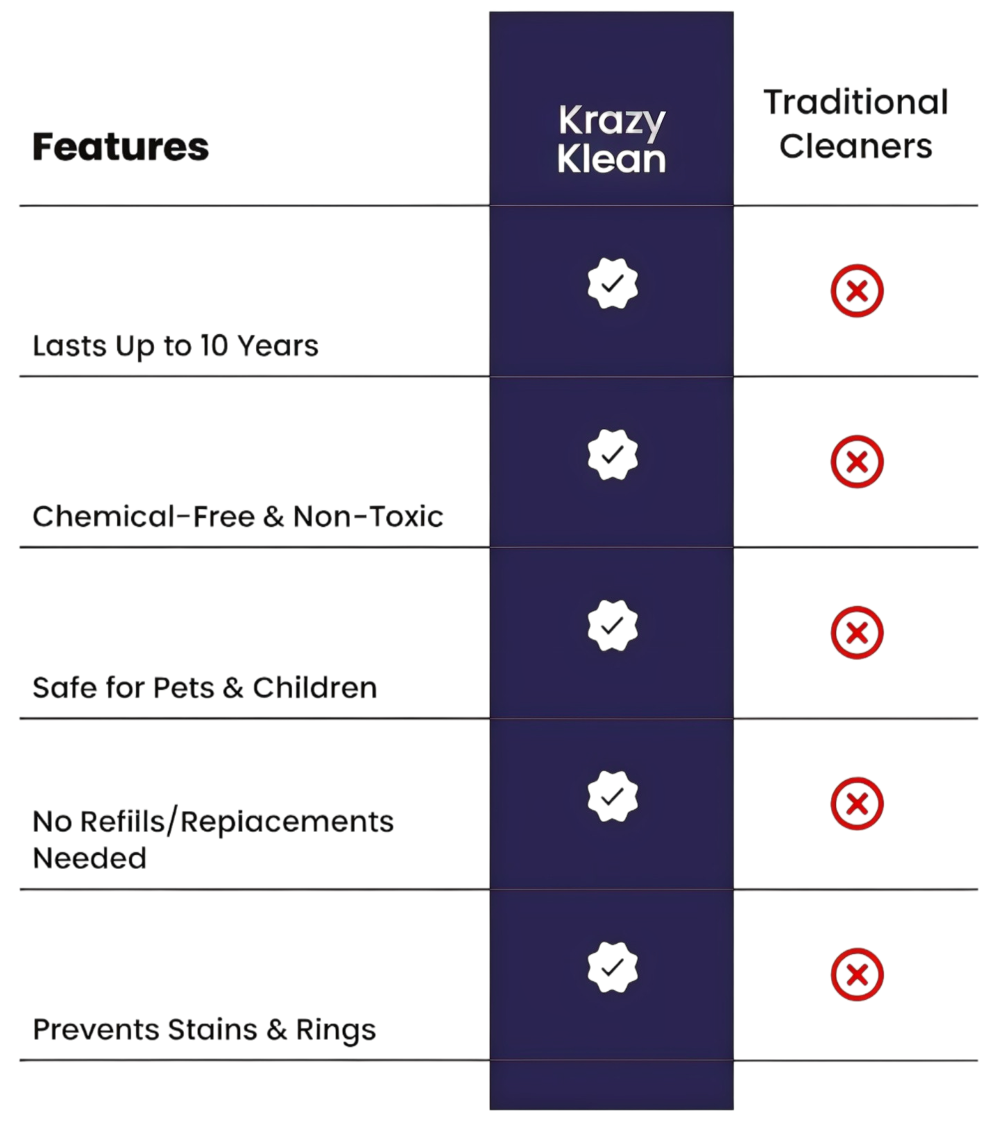 Krazy Klean prevents water stains, scale, and rust. It alters the structure of water minerals using magnetic fields.